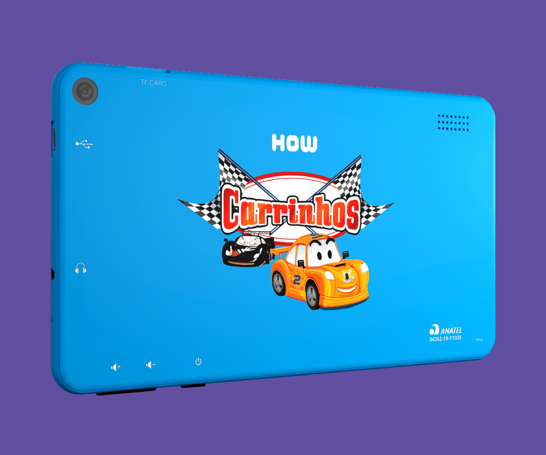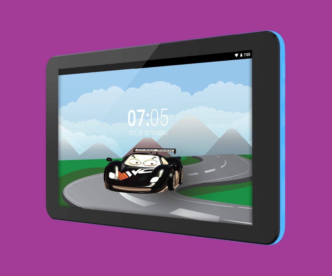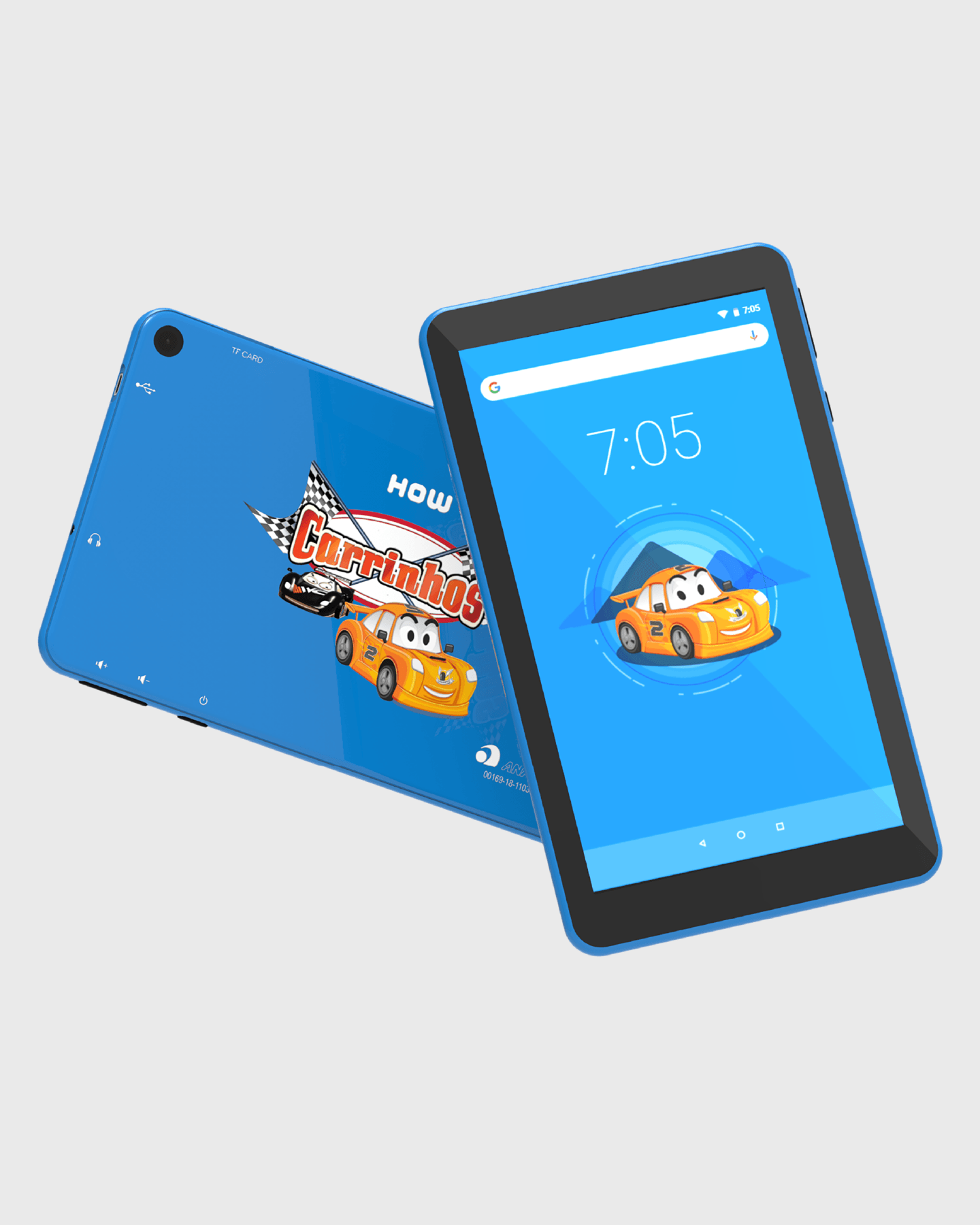 Tablet Infantil tela de 7" polegadas com capinha de proteção e uma super memória interna de 16GB podendo expandir até 32GB com cartão de memória. Você vai viver aventuras radicais! 🚗⚡